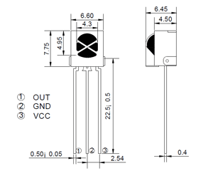 Infrared receiver diode with a shield (ตัวรับอินฟาเรด VS1838 VS1838B)