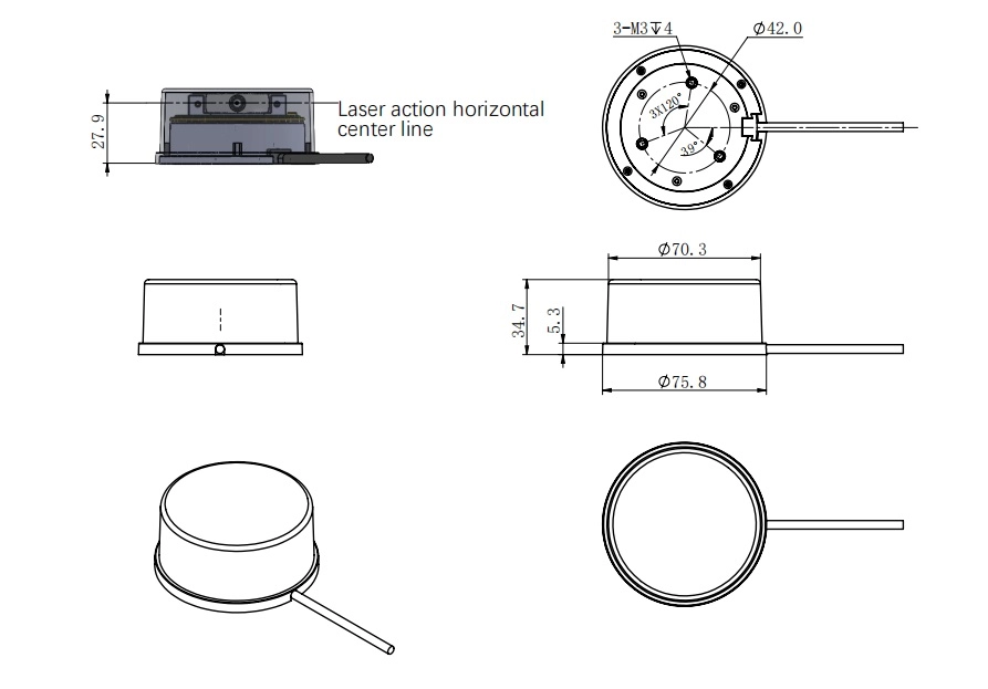 The mechanical structure rotates 360 degrees to continuously output the angle information as well as the point cloud data of the scanning environment while ranging.