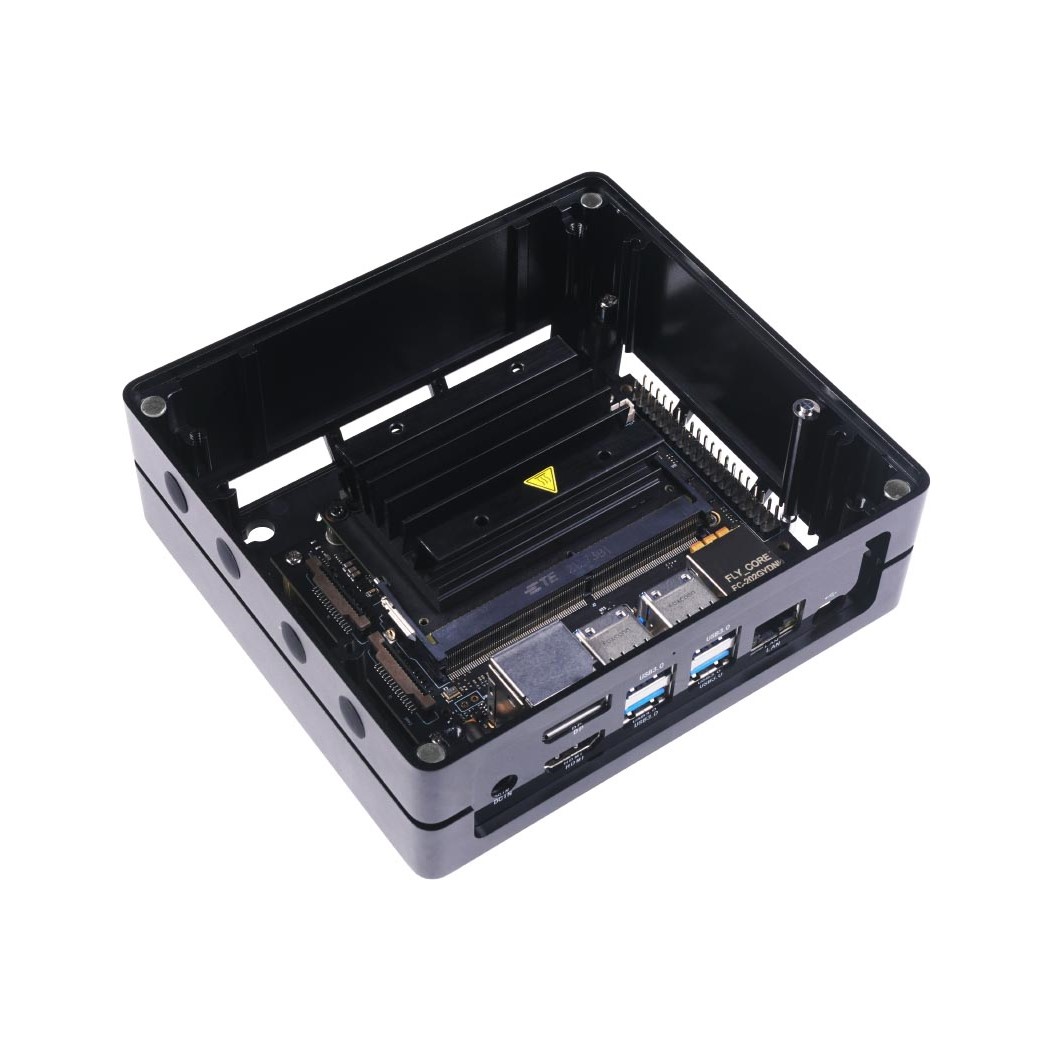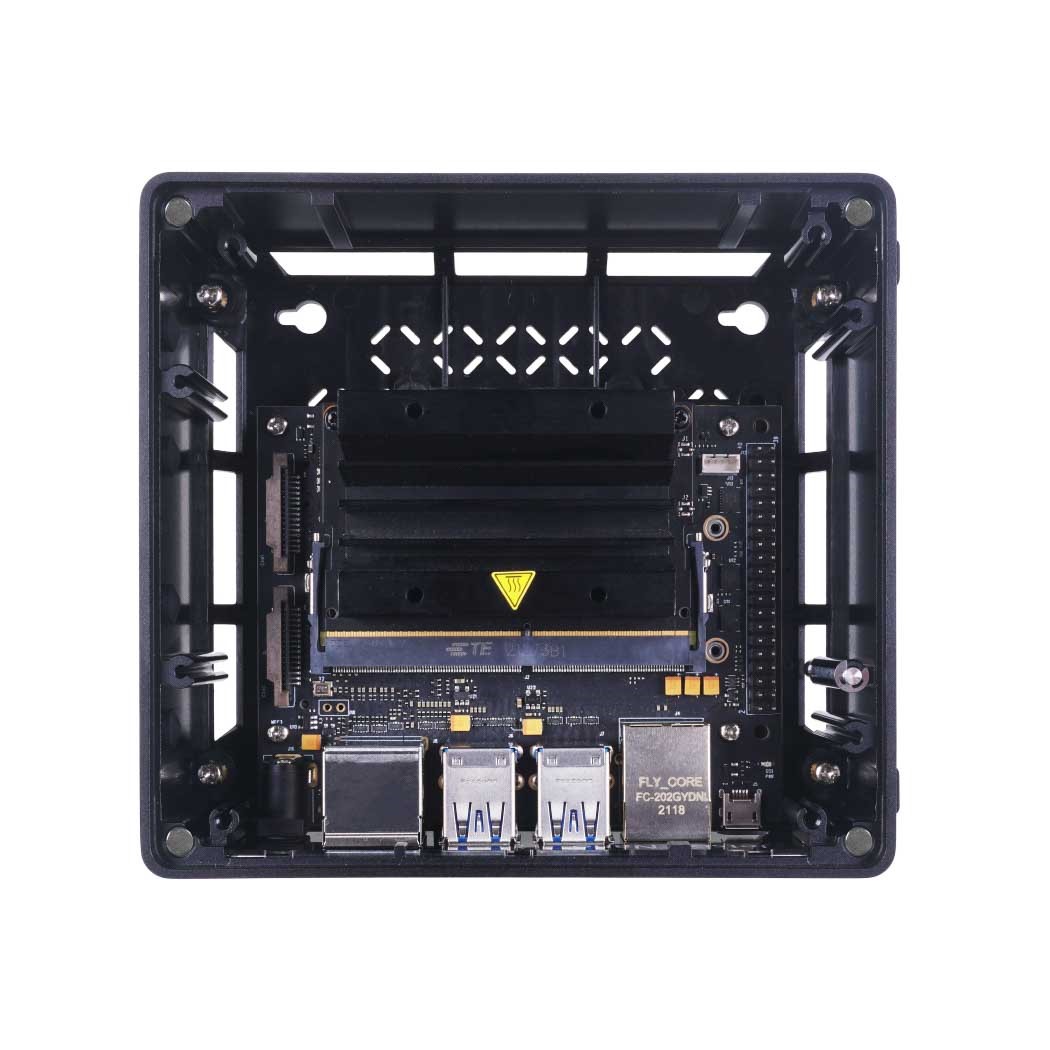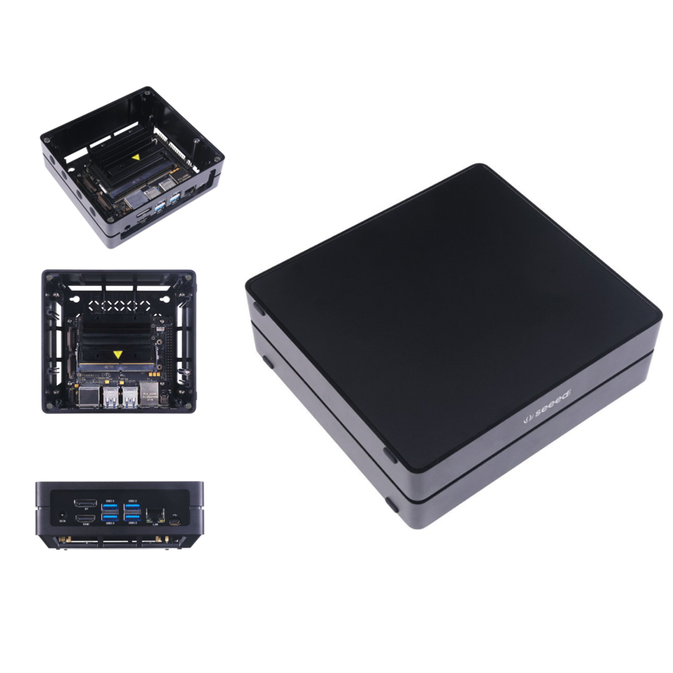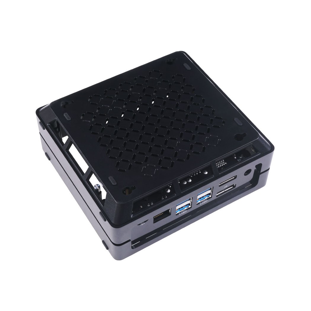With an overall dimension of 130mm*120mm*50mm, it is only around 1/10 of the size of an ordinary computer case which makes it possible to fit in edge AI scenarios. The back screw holes allow you to hang the product as you need. We also provide other editions case like blue, silver and silver mental, whose stackable structure allows you to stack more middle layers to create rooms very easily.