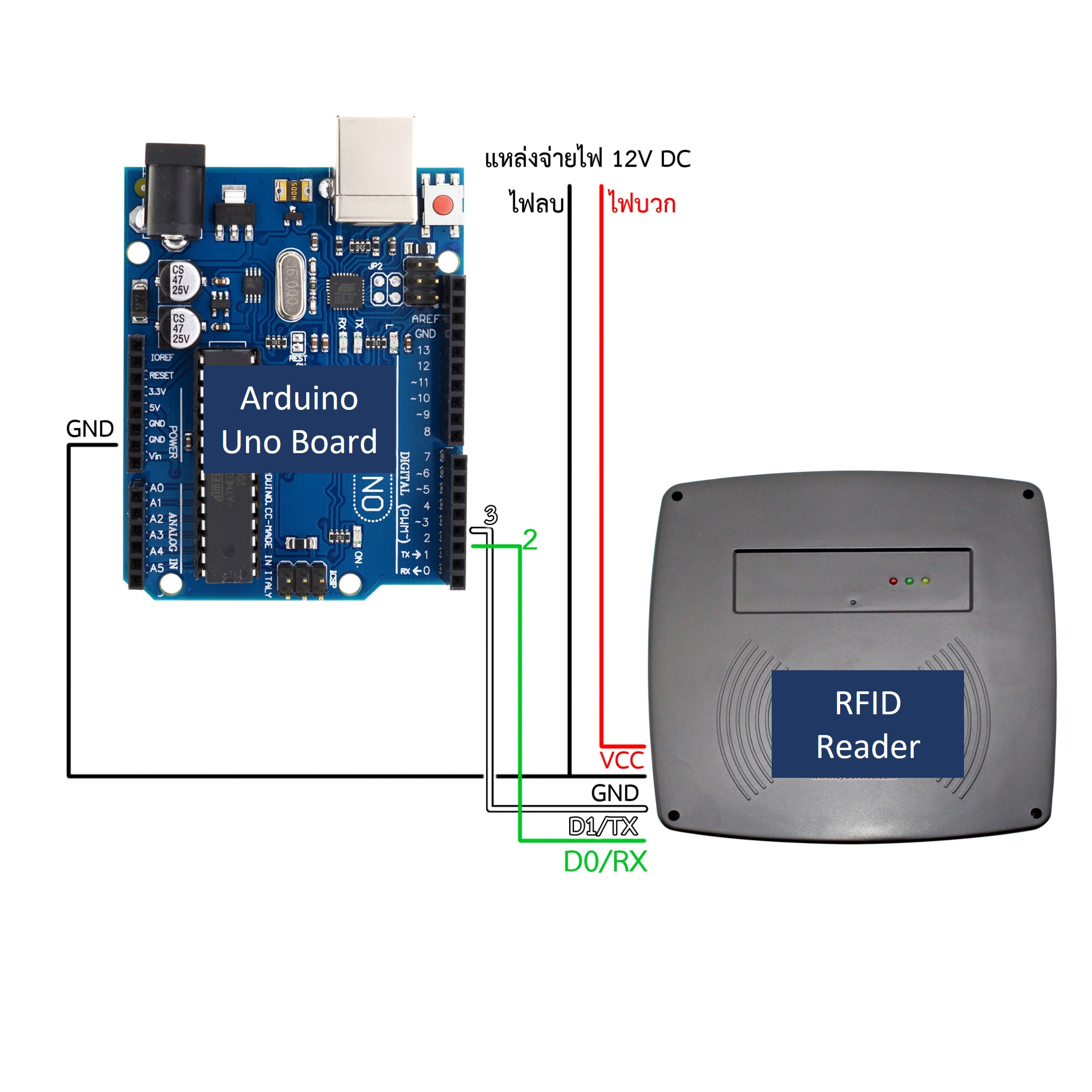 • 2 -> D0/RX (สายสีเขียว)