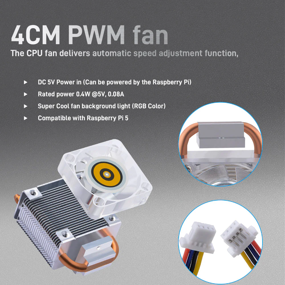 - Efficient Cooling: The tower-style heatsink, made of aluminum, provides excellent heat dissipation to keep the Raspberry Pi 5's temperature within optimal limits.