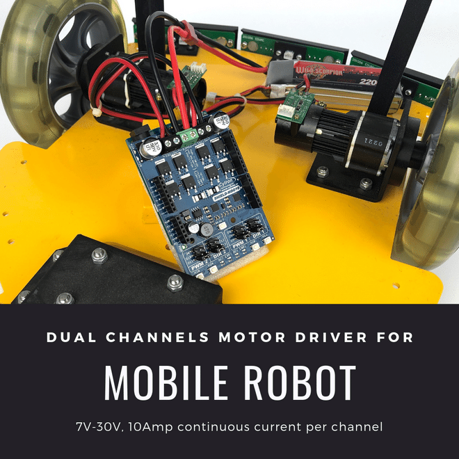 - 1 x 10Amps 7V-30V DC Motor Driver Shield for Arduino (2 Channels)