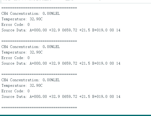 Open the serial monitor, methane concentration, module temperature, and related data would show up.