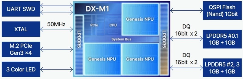 Figure: DX-M1 AI Accelerator M.2 Module Functional Block Diagram